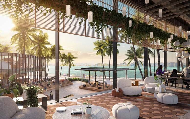 Aria Bay sở hữu vị trí độc đáo tại trung tâm tổ hợp Marina Bayfront District – ngay mặt tiền vịnh Hạ Long, chỉ vài bước là chạm biển. Kết nối 360° với biển, hồ cảnh quan, cầu ánh sáng và trục trặc đường Hoàng Quốc Việt huyết mạch.